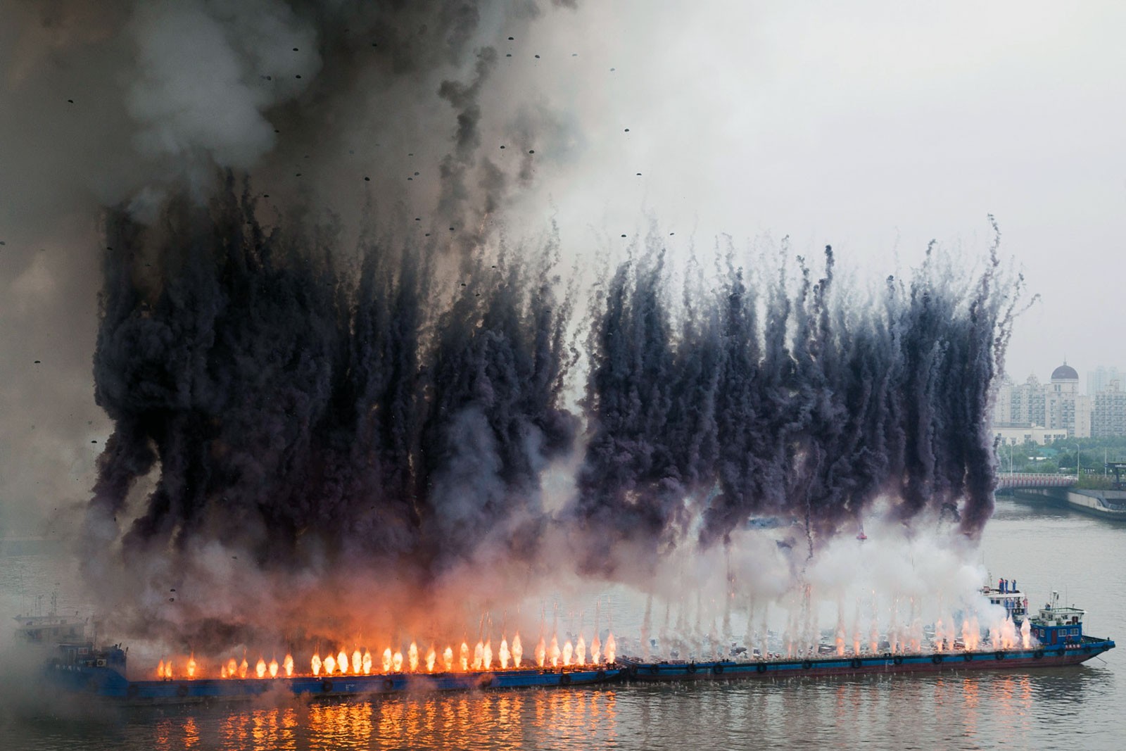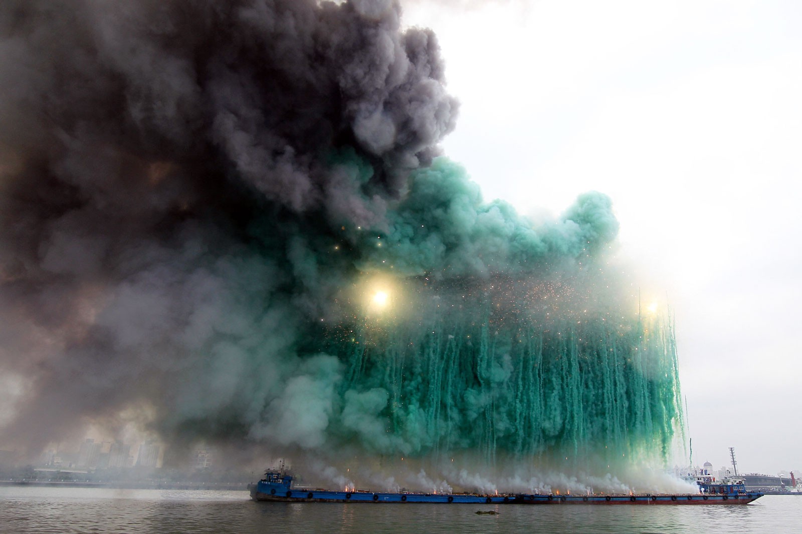 A diferencia de otras conductas, el artista con gran dominio de la polvora utiliza la misma en el arte con fuegos artificiales. Cai Guo-Qiang construyó una escalera al cielo y se la dedicó a su abuela de 100 años, que siguió el desarrollo y ejecución de la obra desde una tablet; falleció un mes más tarde.