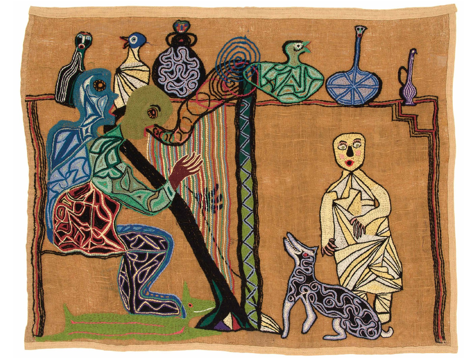Un día llegará quien haga el análisis que merece la obra plástica de Violeta Parra. Se dirá entonces cómo y por qué muere un pajarillo sobre una escopeta vertical, cómo el brazo de una persona se transforma en paloma y cómo se quita el copete que adorna la cabeza de la codorniz o la cima de ciertas plantas siemprevivas para colocarlo sobre la cabeza de la gente (en su cuadro “Contra la guerra”). Cómo se borda el árbol de la vida sobre un fondo clásico de flores de lis. Cómo se pone de pie con bandera chilena en mano (a la manera de Salvador Allende en la última concentración y desfile en Santiago) a Arturo Prat sobre la cubierta del Huáscar mientras la Esmeralda se hunde en un mar de olas celestes y azules de formación barroca. Cómo se retrata una de las tantas masacres del pueblo, en la que los carabineros disparan y hay muertos que caen de cabeza. Cómo pinta la fiesta en su casa con personajes enmascarados y la propia cantora que parece llorar en un rincón. Cómo realiza su autorretrato y descubre que es una guitarrera de Quinchamalí embarazada de uno de sus hijos cantores. Cómo retrata el alma del poeta Thiago de Mello saliendo del brazo de su guitarra convertida en pájaro de mil colores.